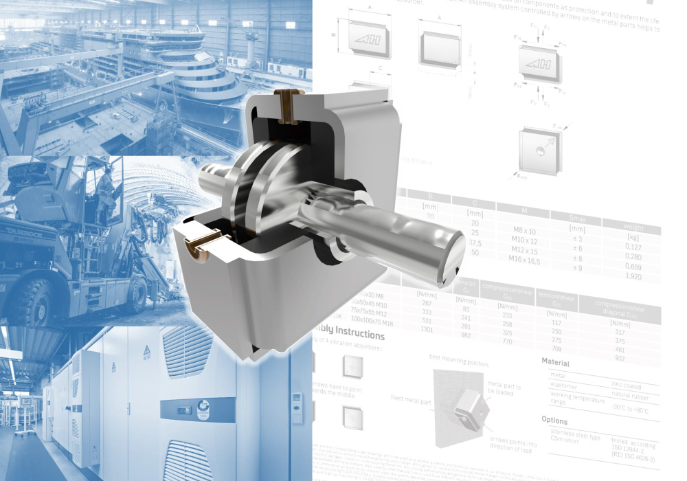 Os absorvedores de vibração de borracha ASA são compostos por partes conectadas de borracha e metal para absorver cargas de impacto sobre os componentes e com isto proteger e estender a vida útil dos mesmos. Seu design único suporta cargas de cisalhamento três vezes mais altas que absorvedores convencionais